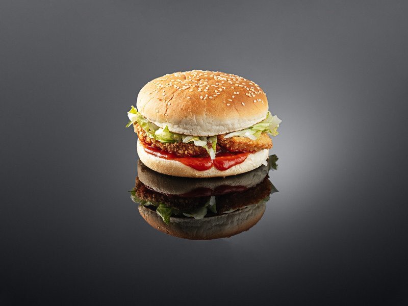 Булка, филе цыпленка, айсберг, лук репчатый, соус