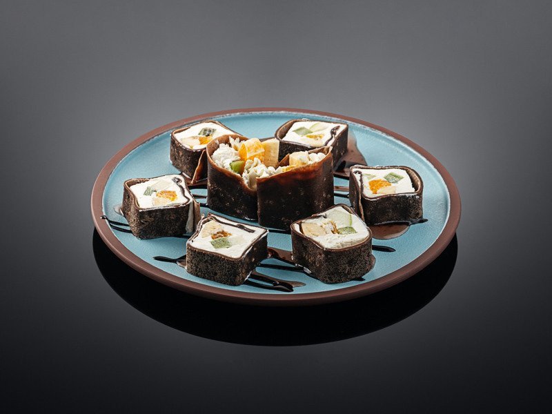 Сливочный сыр, апельсин, банан, киви, яблоко, яйцо, какао