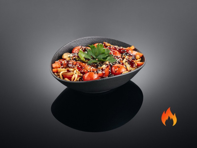 Лапша, болгарский перец, грибы, лук репчатый, соус
