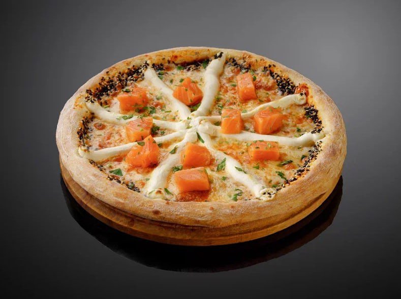 С лососем на красном соусе и сырами: сливочный сыр, пармезан, моцарелла, российский