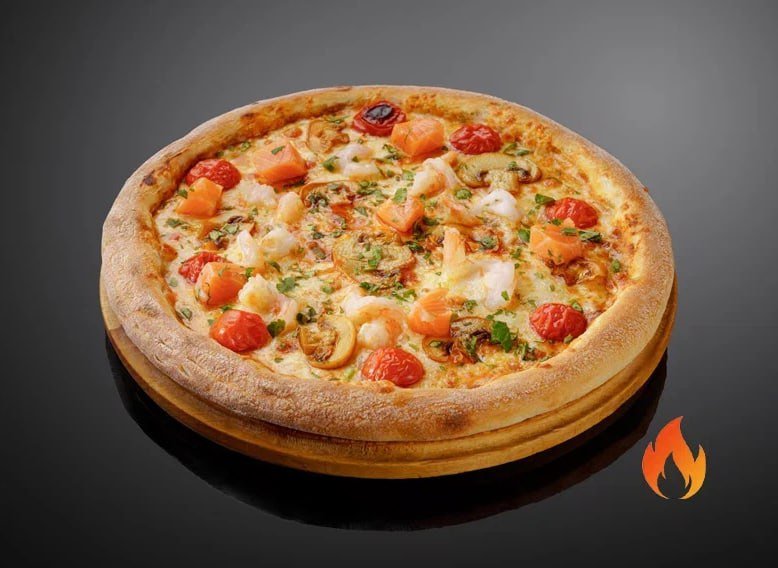 С лососем, креветками, грибами и помидорами, под соусом том-ям.
