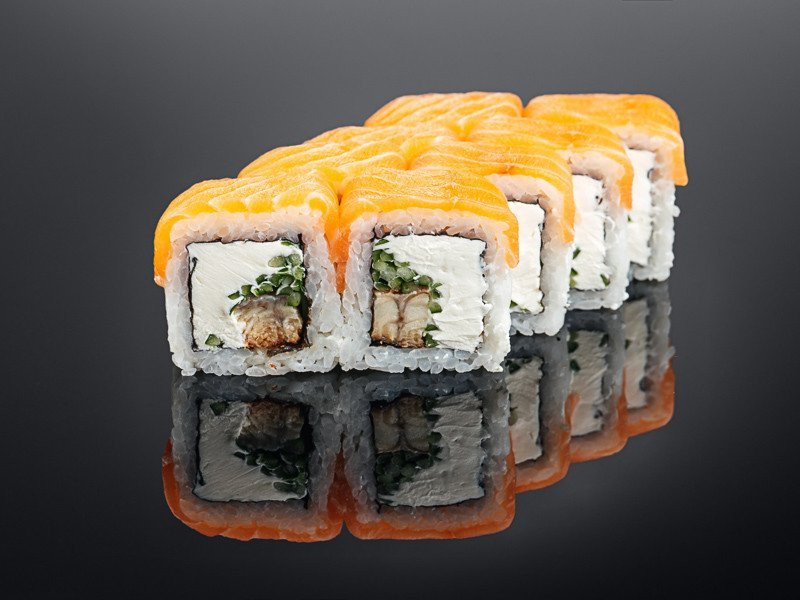 Нори, рис, лосось, угорь, сливочный сыр, огурец